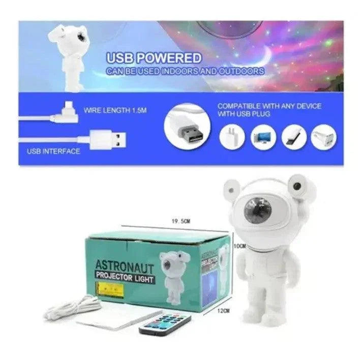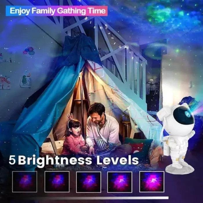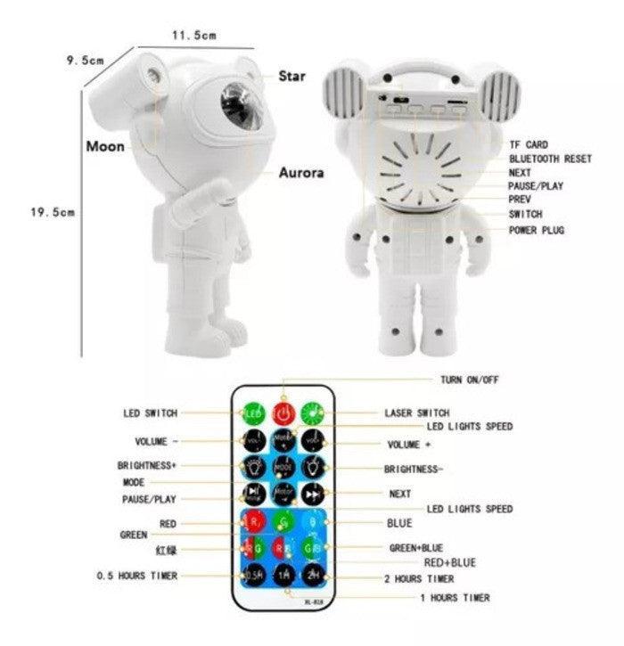 El proyector de luz nocturna puede ser un gran juguete. La cabeza del astronauta se puede girar 360° a través de la fuerza magnética, lo que permite que la proyección de la nebulosa gire en cualquier ángulo y se puede proyectar en cualquier lugar sin restricciones. La base lunar es desmontable, los brazos se pueden mover 360°, y se pueden tomar varias poses, el proyector de luz de estrellas también es un buen adorno decorativo.