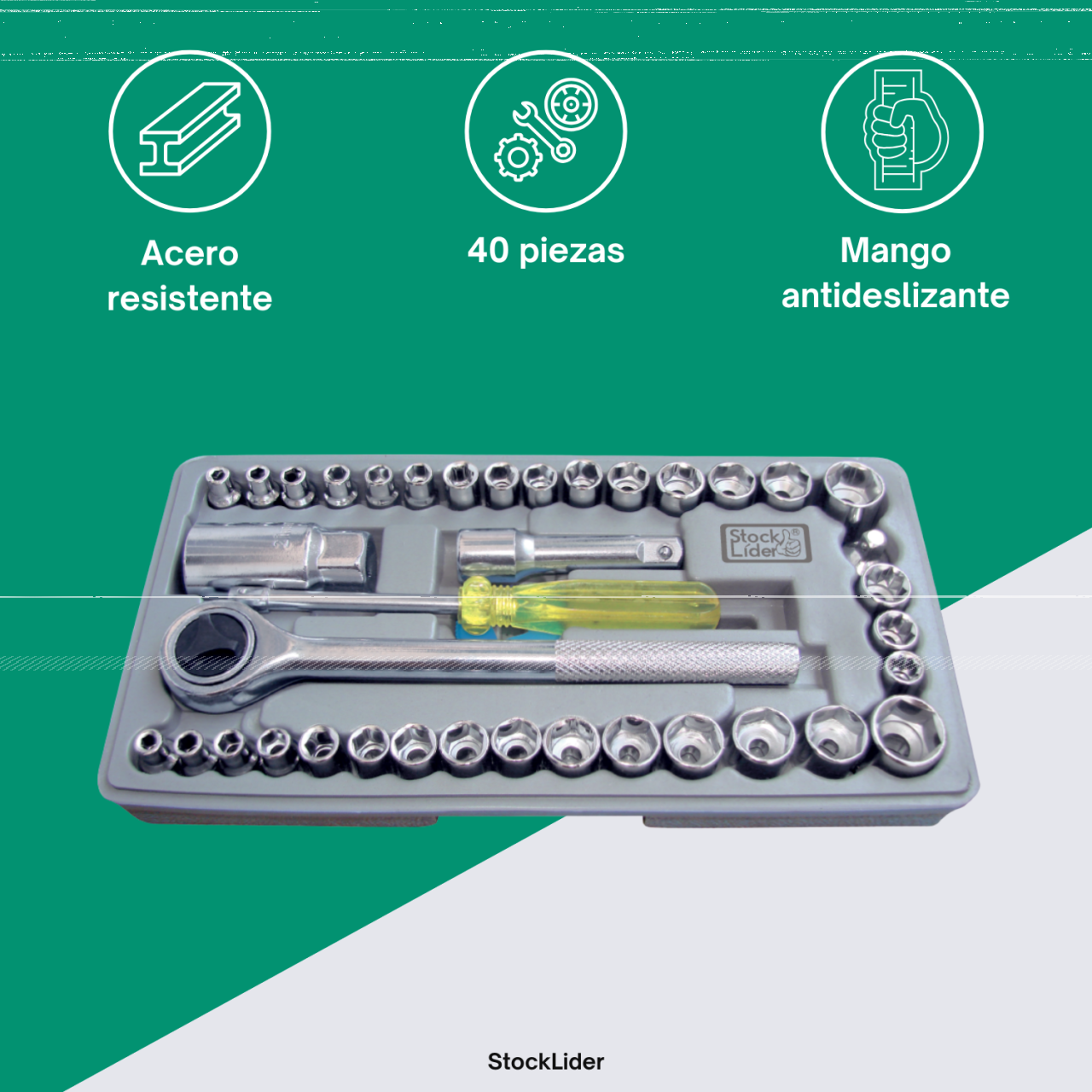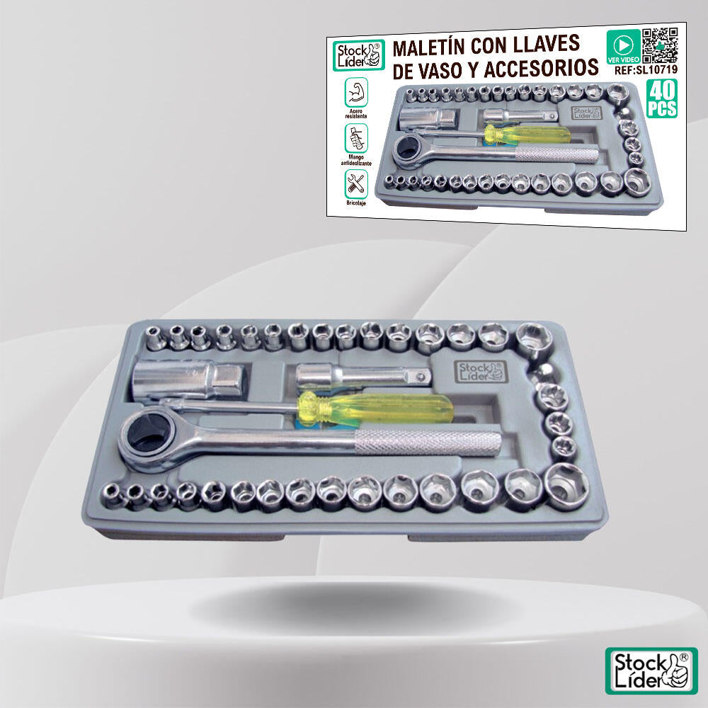 El maletín con llaves de vaso y accesorios es un completo set de 40 piezas diseñado para ofrecer versatilidad, resistencia y precisión en todo tipo de trabajos de bricolaje, mantenimiento y mecánica. Fabricado en acero cromo-vanadio de alta calidad, garantiza una excelente resistencia a la corrosión y una larga vida útil incluso en usos exigentes.